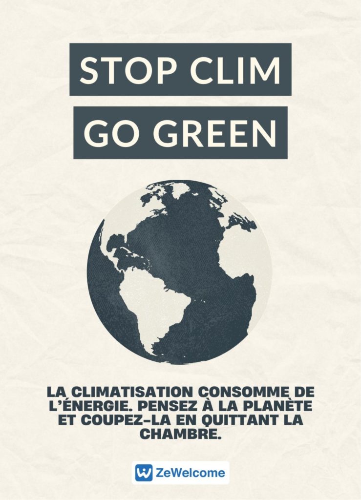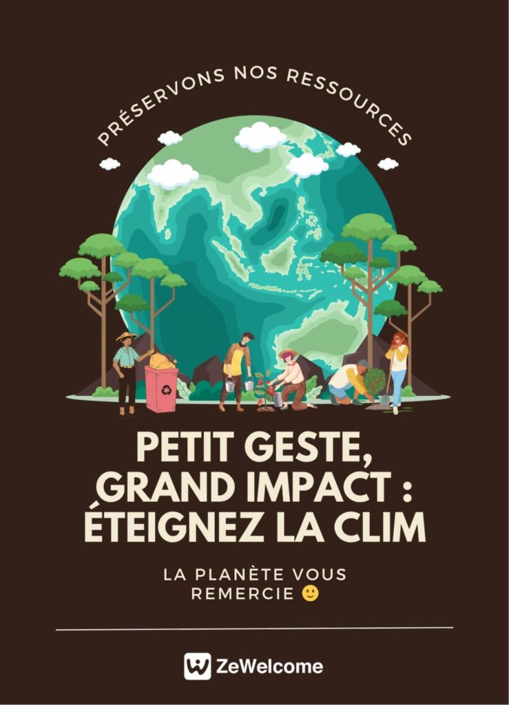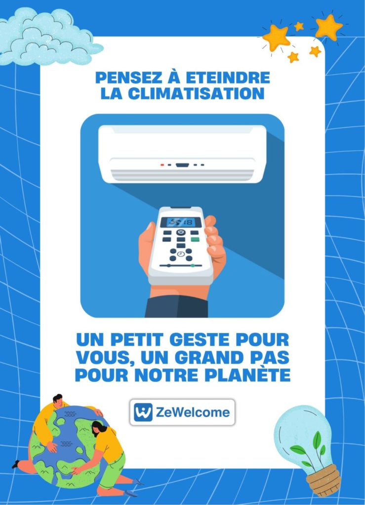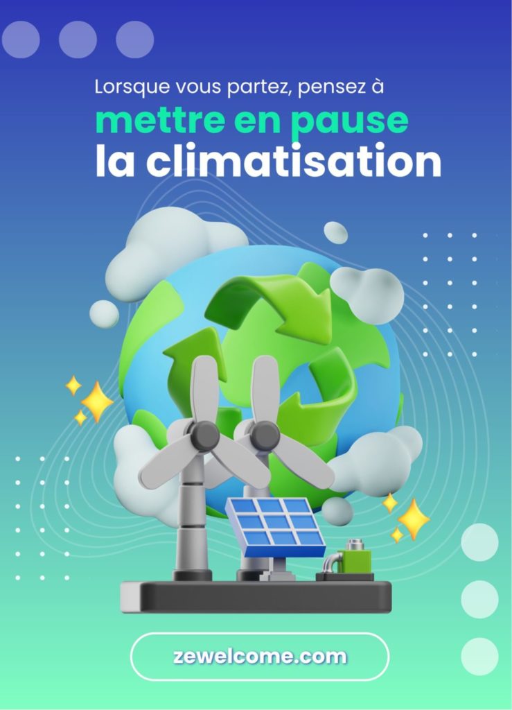 🎨 We created some eco-friendly posters (in French and English), beautifully designed, placed in strategic locations (near light switches, in bedrooms, in the entranceway).